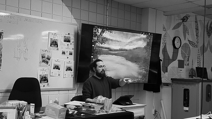 À la suite du programme, j’ai occupé un poste d’enseignant en arts plastiques et multimédias au secondaire tout en continuant l’élaboration de mon projet.